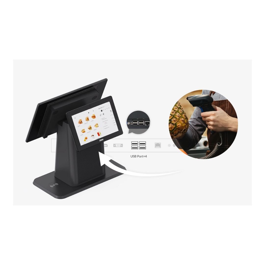 - Included Peripherals: Printer, Card Reader (Swiper), Wireless Charging, Camera (Optional)