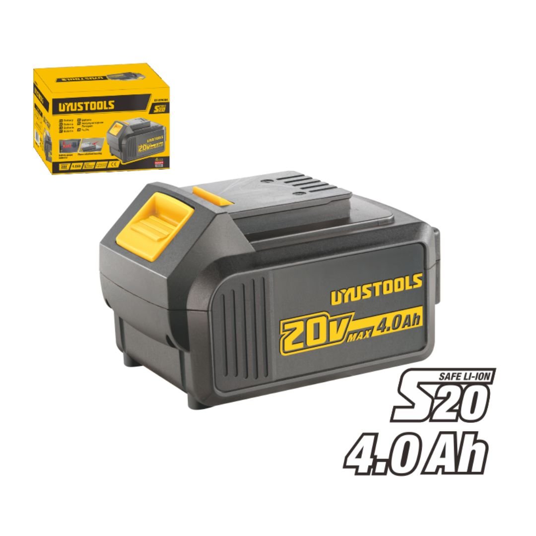 20V 4.0Ah Battery ARL-UY-BTR204. This is a 20-volt battery with a higher capacity of 4.0Ah (Ampere-hours), providing extended runtime for compatible devices. It is designed with a flame retardant housing, offering an added layer of safety during use and storage by minimizing the risk of fire. A convenient indicator lamp is integrated to show the remaining battery capacity, allowing users to easily monitor the power level and plan accordingly. This battery is ideal for various applications requiring a 20V power source and longer operational periods, combining reliable power with enhanced safety and user-friendly charge monitoring.