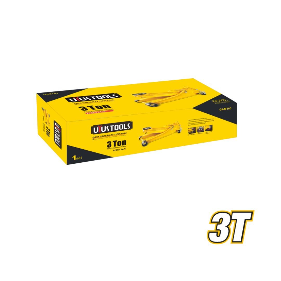 3 Ton Low Profile Floor Jack (75-505mm Lift Height) with Double Pump and Safety Valve Model ARL-GAM103. This hydraulic floor jack has a lifting capacity of 3 tons and a low profile design, with a minimum height of just 75mm, making it suitable for vehicles with low ground clearance. It offers a maximum lifting height of 505mm, providing a versatile lifting range. The jack is equipped with a safety valve to prevent overloading and features a double pump mechanism for faster lifting action. It adheres to the ASME PALD-2019 Standard for performance and safety.