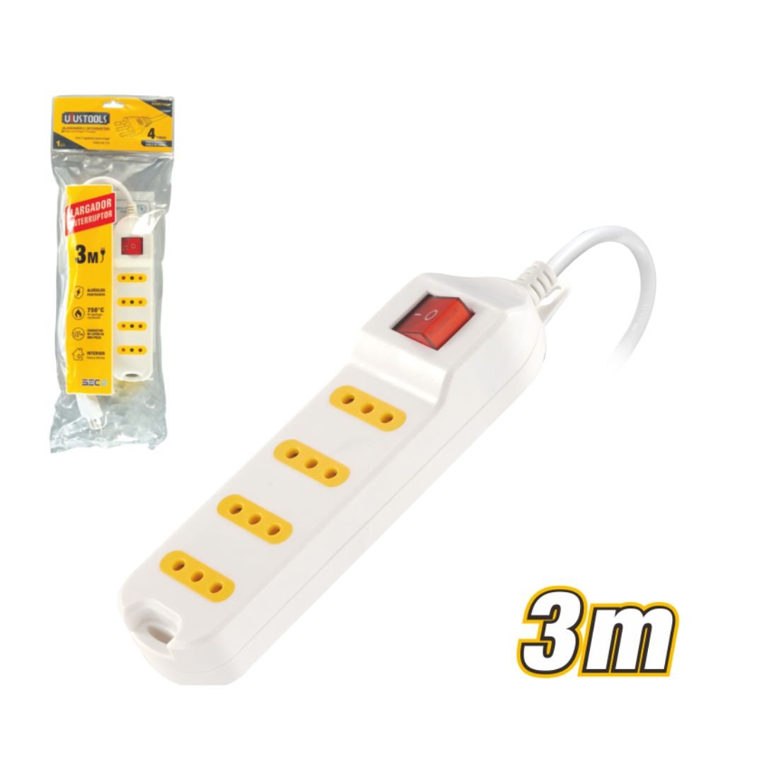 3m White Extension Socket with 4 Outlets ARL-AGM314CL-B. This convenient extension socket provides four electrical outlets, allowing you to power multiple devices from a single power source. It comes with a 3-meter long power cord, offering flexibility in placement and reach. The white color provides a clean and unobtrusive appearance. This 4-outlet extension socket is ideal for use in homes, offices, or workshops where additional power outlets are needed and provides a practical solution for managing multiple electronic devices.
