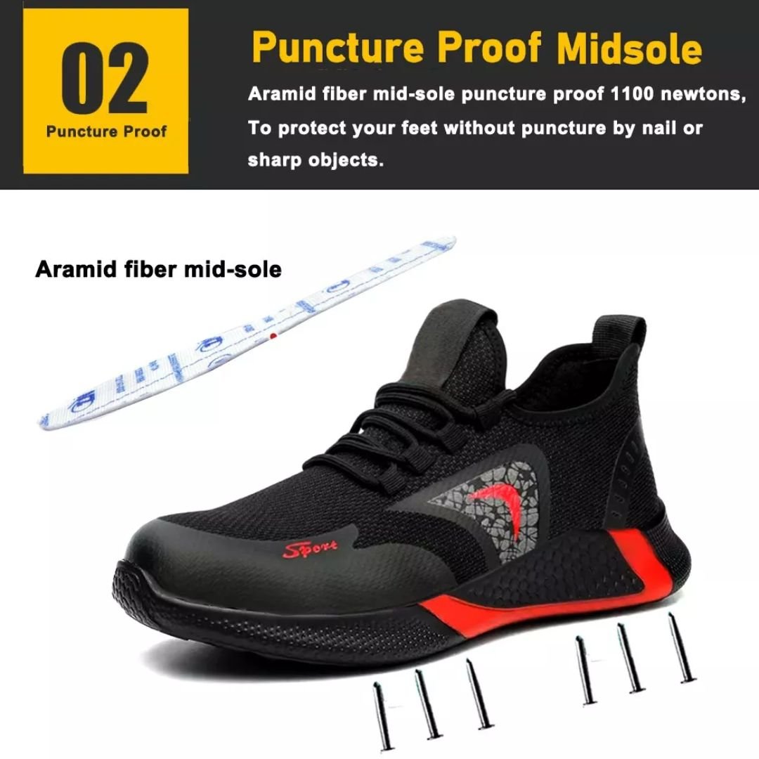 - Midsole: Aramid fiber midsole for puncture resistance, meeting CE standards.