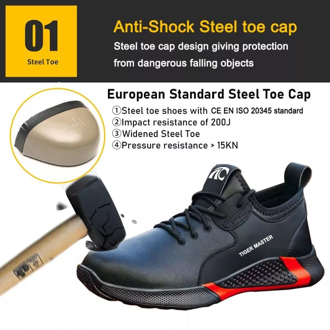 - Toe Cap: Steel toe cap for impact resistance, meeting CE standards.