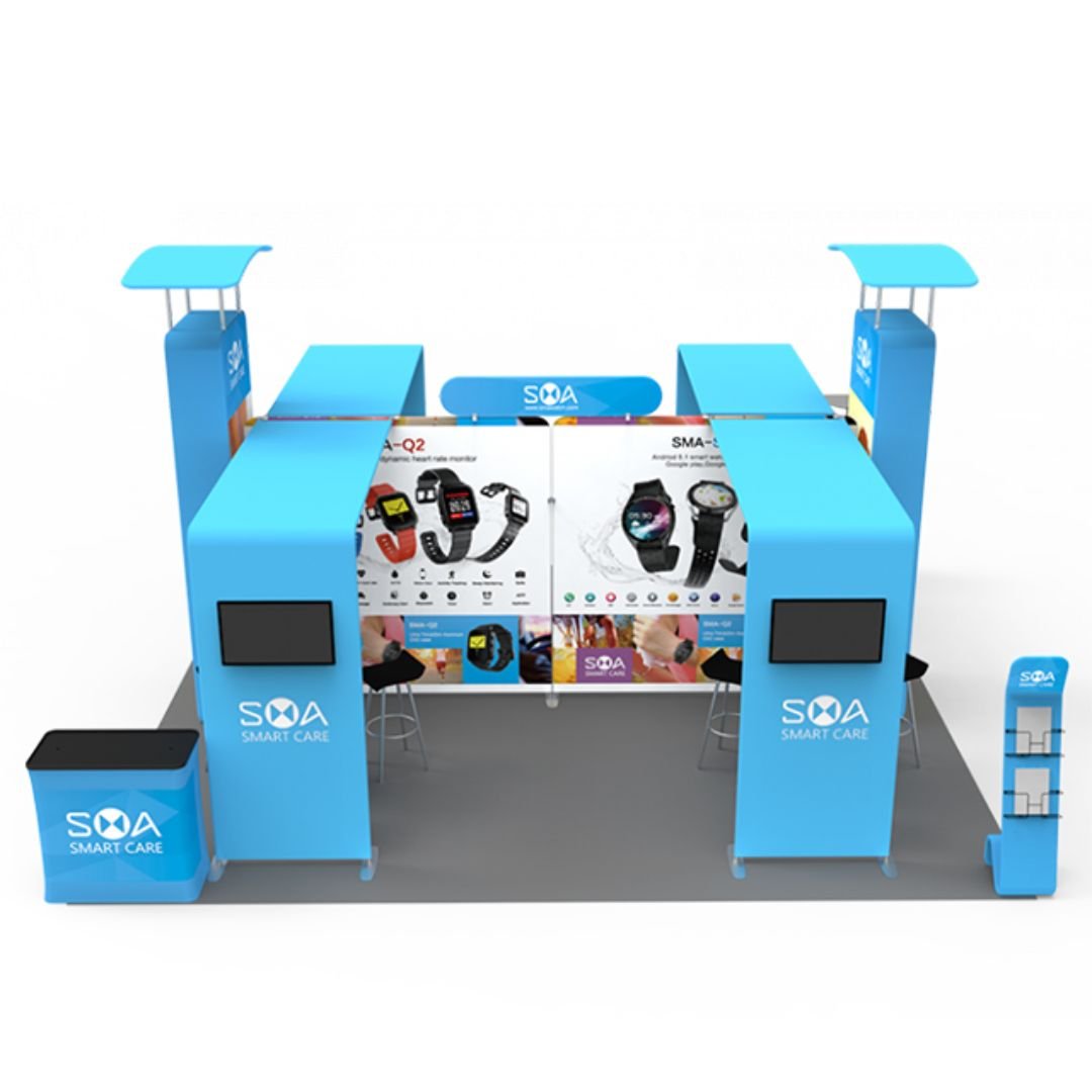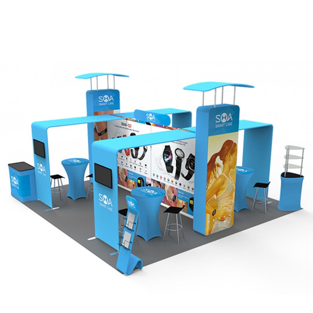 Make a powerful and lasting impression at every trade show with our Customizable Trade Show Display Booth. Designed for effortless setup, this stand allows for quick assembly, ensuring you can focus on showcasing your brand. Captivate your audience with stunning, customizable graphics printed on high-quality Polyester or PVC tension fabric, creating a visually brilliant and attention-grabbing display. Its versatile modular design enables you to adapt layouts to effectively highlight various products and create engaging showcases. Built with sturdy materials, this booth is engineered for enduring impressions, ensuring a professional look event after event. Dominate any exhibition and become the center of attention with a captivating and adaptable showcase that leaves a lasting brand impact. Available in various sizes, including 10ft and 8ft, with fully customizable color options.