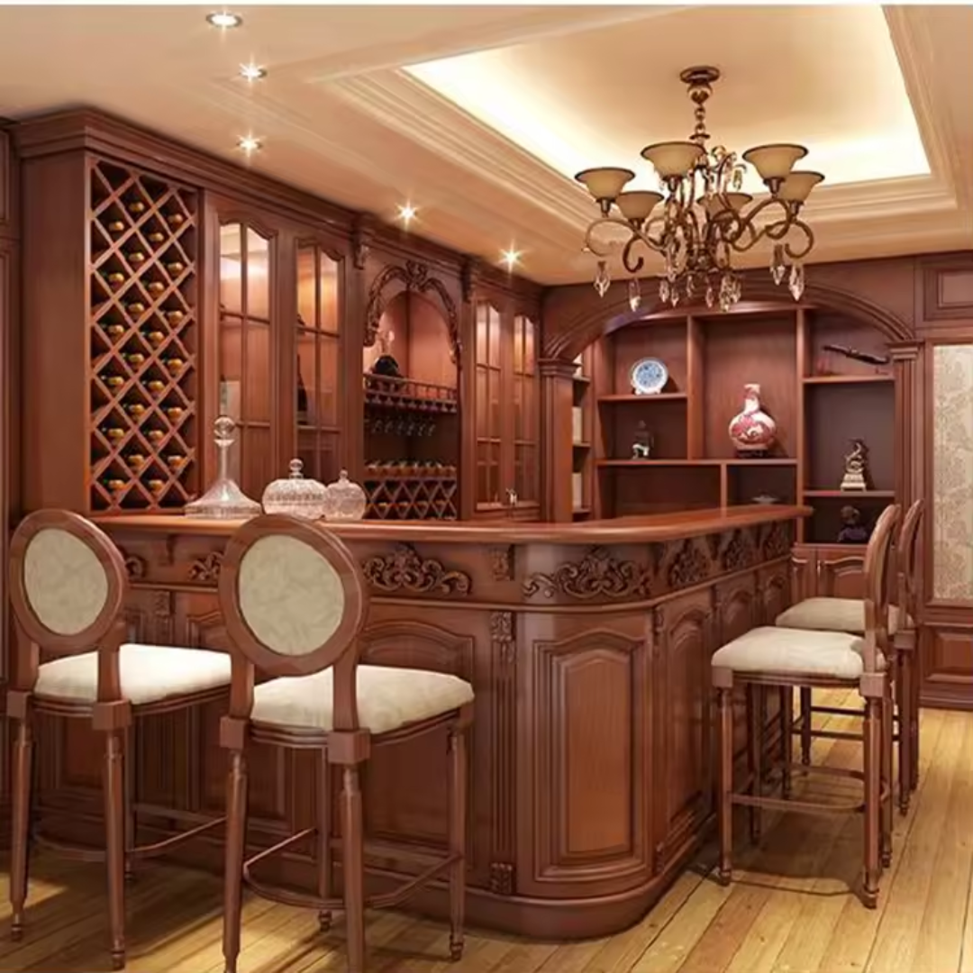 Home Bar Wine Cabinet – Home Interior Antique Wine Vanity Cabinet ARL-JG-13. The ARL-JG-13 offers a versatile and elegant home interior wine vanity cabinet, featuring an antique appearance and traditional design suitable for a sophisticated home bar or living space. This wine cabinet is ideal for storing and displaying wine collections, seamlessly integrating into various settings including living rooms, dining areas, hotels, apartments, office buildings, schools, and leisure facilities. Crafted from customizable wooden materials (Particle Board, MDF, Plywood, or Solid Wood), it ensures durability and a refined finish. With its customizable options for color, size, and finishes, this wine cabinet provides a functional and attractive solution for diverse interior design needs.
