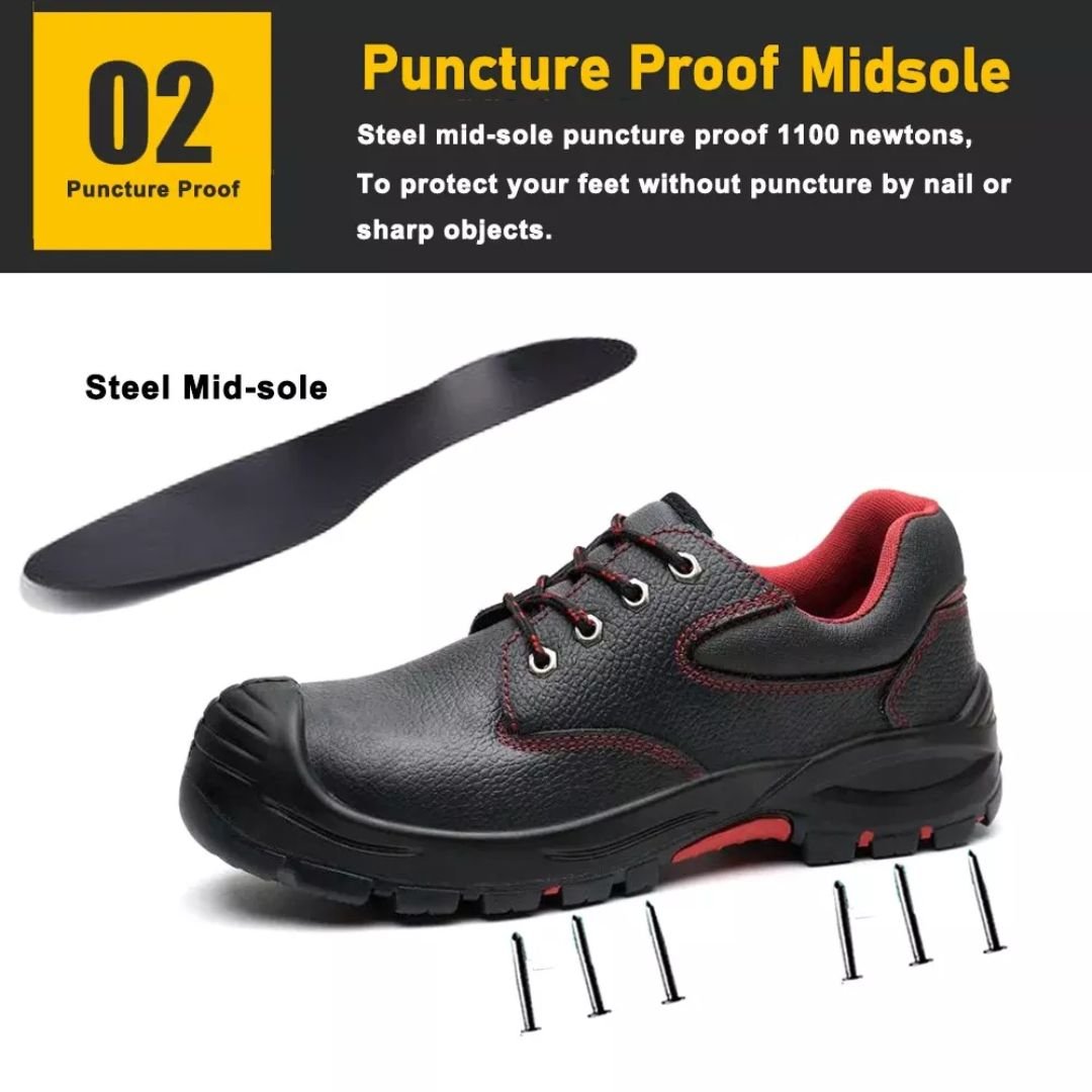 - Toe cap & mid sole: Steel toe cap (impact resistant 200 joules), Steel mid-sole (puncture resistant 1100 newtons)