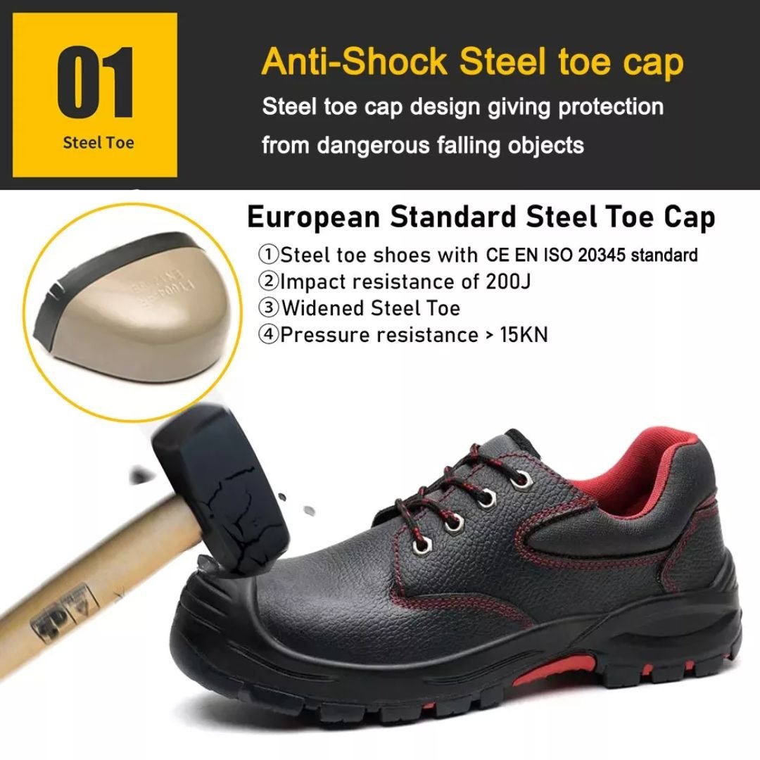 - Steel toe cap impact-resistant to 200 joules for superior toe protection.