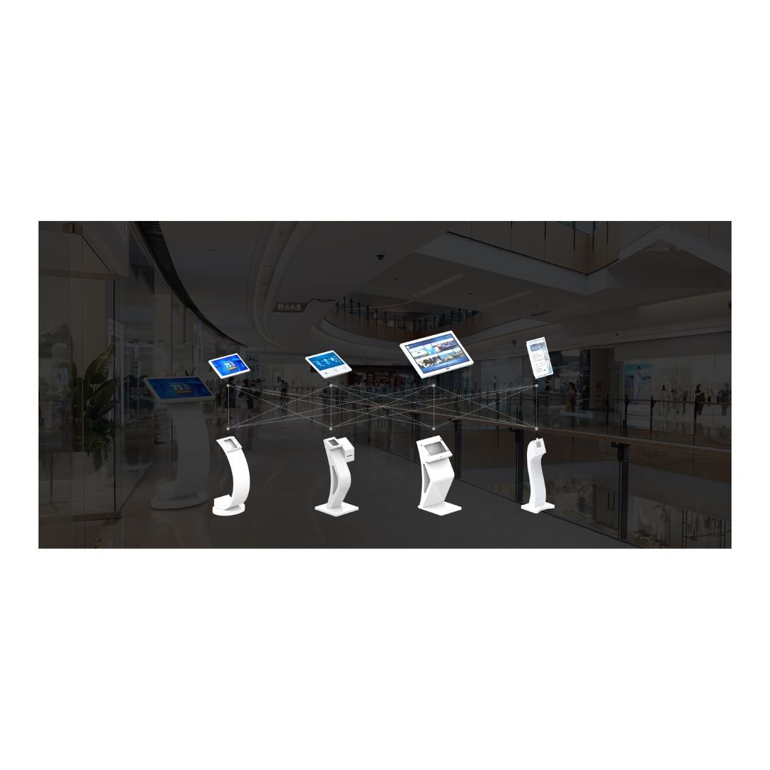 Interactive Digital Signage Kiosk 21.5 inch. The ARL-RCS-220CC and ARL-RCS-320CC 21.5 inch Interactive Digital Signage Kiosks feature a unique “C”-shaped stand and round base, offering a space-aesthetic, soft, and flexible arc-shaped structure. With advanced projected capacitive interactive technology, the 10-point touch screen provides smooth operation akin to a smartphone and superior optical quality, protected by explosion-proof, edge-to-edge tempered glass ensuring touch is unaffected by dust or debris. Available in 21.5 inch and 32 inch panel sizes, with default brightness of 500 nits (optional up to 3500 nits) and optional IR touch, these kiosks integrate a built-in multimedia solution and are ideal for self-service and advertising displays in various commercial settings, including trade shows, marketing, and retail.