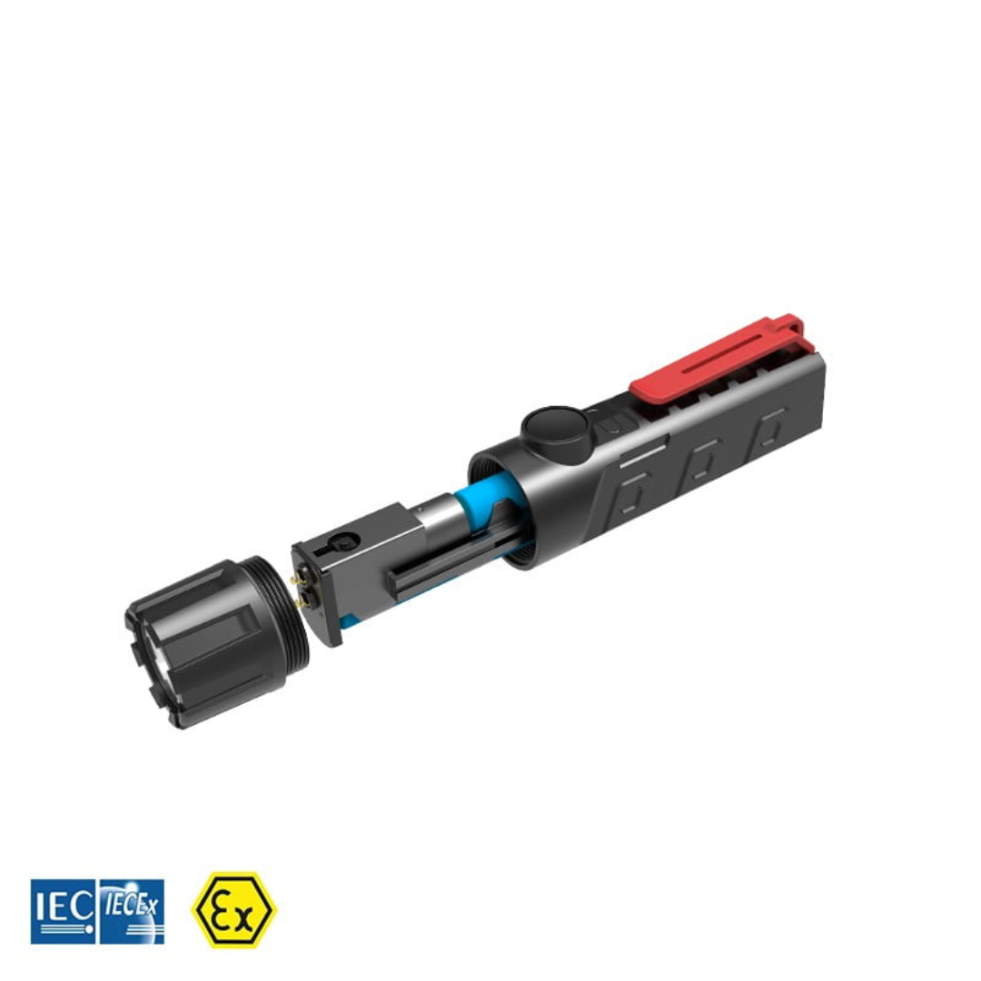 Intrinsically Safe Explosion-Proof Torch ARL-ExMP31N. The ARL-ExMP31N is a convenient and quick-to-use intrinsically safe, explosion-proof torch powered by three AA alkaline batteries. It is suitable for hazardous environments, including Zone 0/1/2 and Zone 21/22. Constructed from high-performance nylon, the torch is permanently anti-static, lightweight (<200g), shock-resistant, corrosion-resistant, and oil-resistant, with anti-aging properties. It boasts an IP66/67 protection rating and features a range of user-friendly designs. This torch also offers the unique flexibility to switch to the ARL-ExMP31R’s lithium battery module for alternative power.