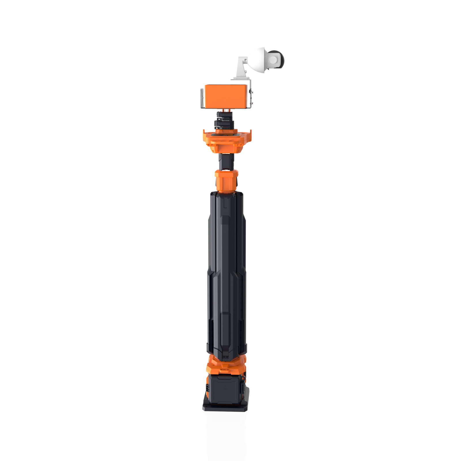The platform features a universal mounting system with multiple holes for various devices and a rainproof box for control and signal devices. It also includes dual rainproof USB outputs for charging devices and a hook that can serve as a phone stand.
