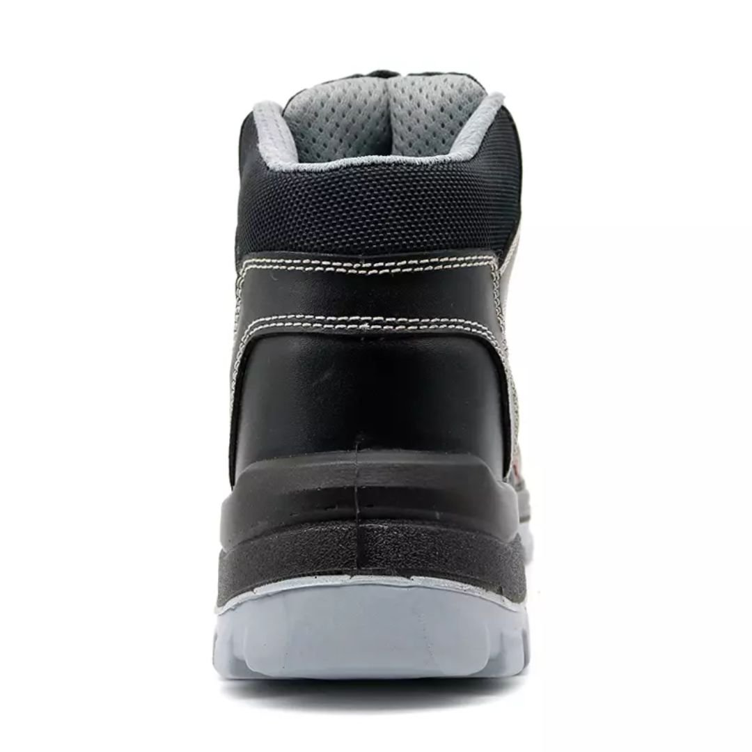 - Toe cap & mid sole: Steel toe cap (impact resistant 200 joules), Steel mid plate (puncture resistant 1100 newtons)