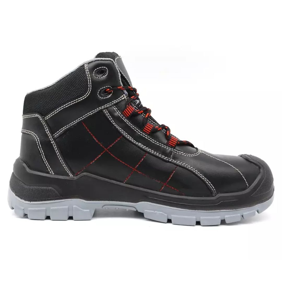 The 2025 New Anti Puncture Safety Shoes with Steel Toe ARL-TM188 are modern and robust safety footwear designed to provide essential protection in various work environments. Constructed with an injection-moulded method, these mid-cut shoes feature an upper made from durable corrected split cow leather. The sole is a dual-density PU, offering a balance of cushioning and excellent slip resistance. For enhanced comfort during long work hours, the lining is made of soft air mesh fabric, and the tongue and collar are made of high-density fabric for added support and comfort. These safety shoes are equipped with a steel toe cap that is impact-resistant up to 200 joules and a steel mid-plate that offers puncture resistance up to 1100 newtons, meeting CE EN ISO 20345 S3 SRC standards. These shoes are ideal for construction sites, super markets, and various other work environments where foot safety is crucial.
