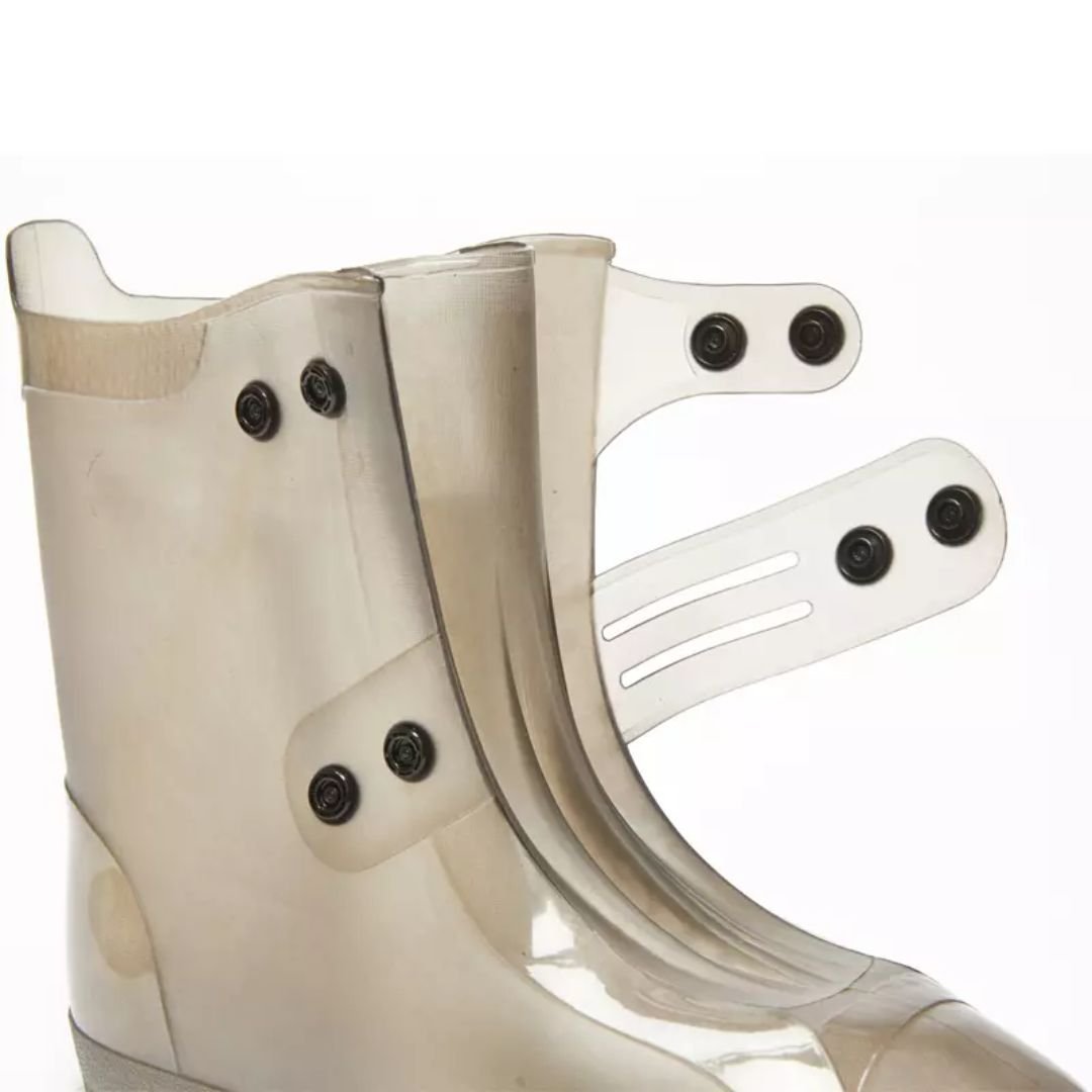 The 26 cm Waterproof PVC Rain Shoe Cover for Unisex ARL-H-919 offers a convenient & effective solution for protecting your footwear from rain & wet conditions. These mid-height (26 cm) shoe covers are designed for unisex use & are ideal for rainy days & general outdoor activities. Constructed from 100% PVC for both the upper & sole, these shoe covers are injection-moulded to ensure seamless & absolute waterproofing. They are engineered to be lightweight & quick-drying, offering convenience & comfort. The PVC material also provides oil resistance & strong anti-slip properties, significantly enhancing safety on wet or slick surfaces. Available in a range of transparent & vibrant color options including blue, pink, orange, brown, or clear transparent, these rain shoe covers combine practicality with a fashionable trend. They are also recyclable, aligning with environmental considerations.