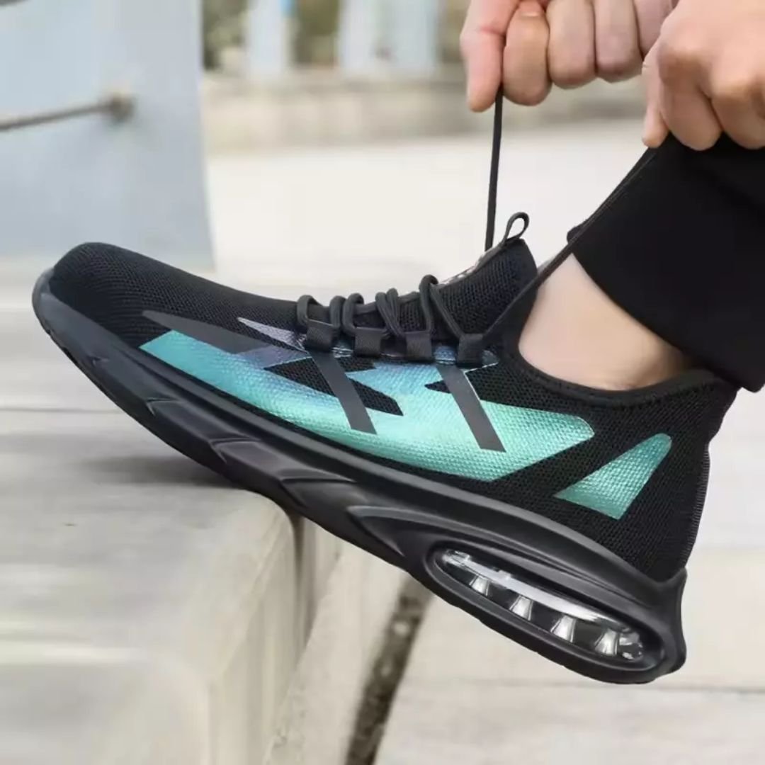 - Sole: Air-cushioned PU, slip-resistant, and meets CE EN ISO 20345:2022 Non-Slip Testing Standards. Also resistant to oil, petrol, and chemicals.