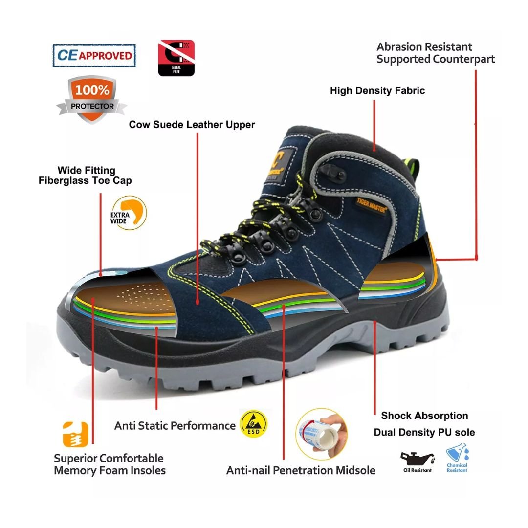 - Toe Cap: Fiberglass toe cap for impact resistance, meeting CE standards.