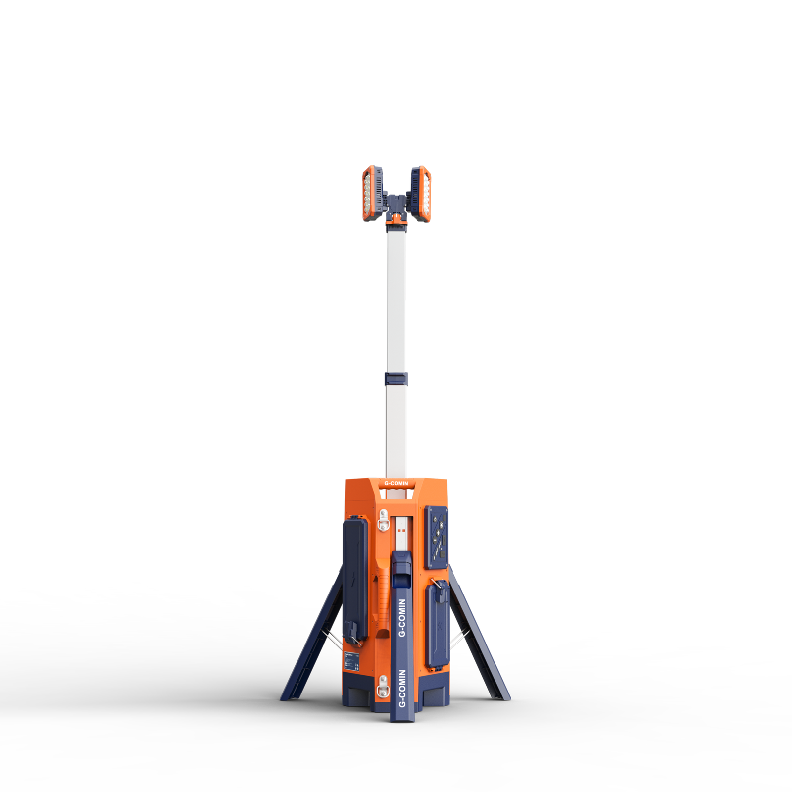 The Portable Light Tower ARL-TL-400 is a deployable portable lighting solution designed as a robust package. It emphasizes speedy deployment, achieving setup or folding in seconds with a single latch to release the tripod. The light offers multiple lighting distributions and features a self-locking pole that can be dragged and locked at any position, with contraction achieved in one push. The light head offers 360°+ adjustability, including up/down/left/right movement, facilitated by an inbuilt damping mechanism.