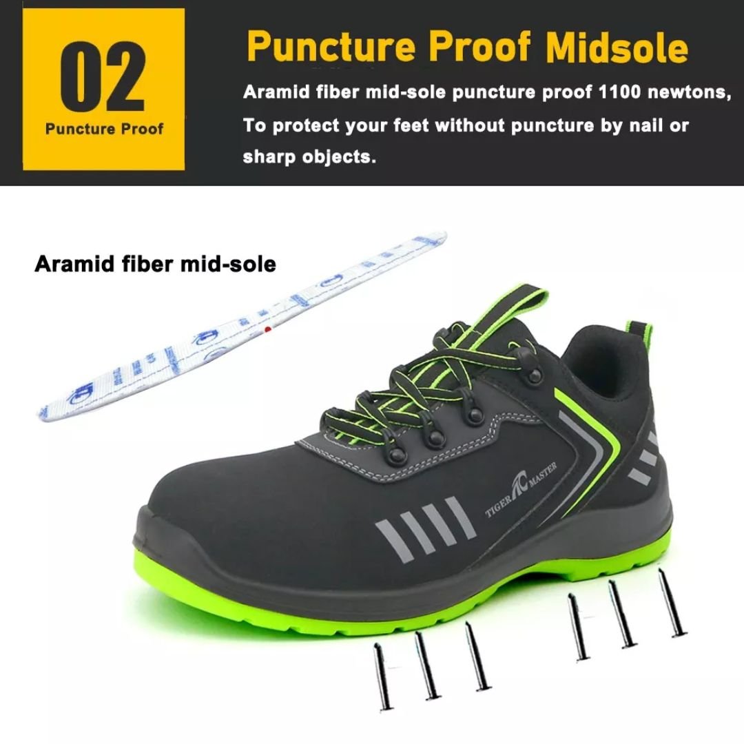 - Midsole: Aramid fiber midsole for puncture resistance, meeting CE standards.