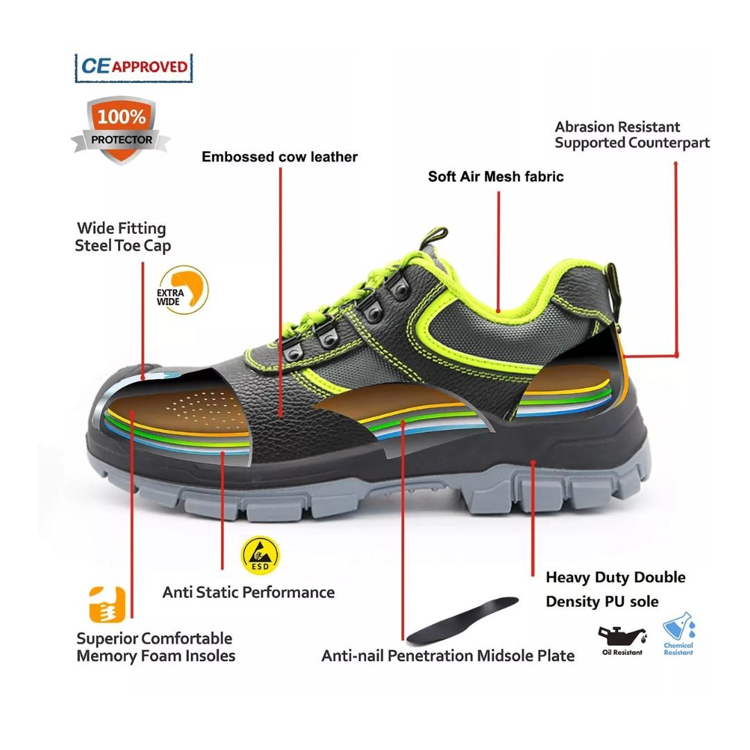 - Toe Cap: Steel toe cap for impact resistance, meeting CE standards.