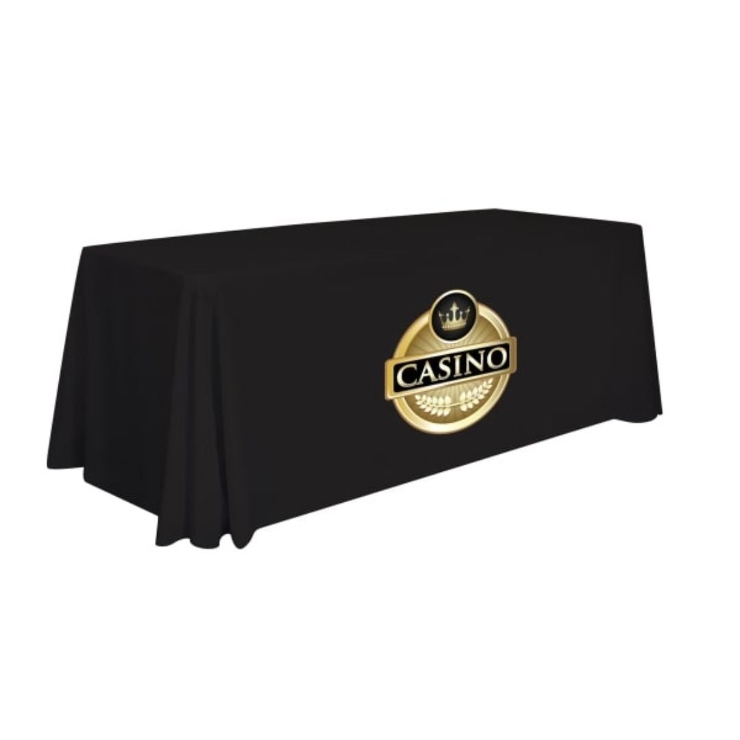 Showcase your brand’s commitment to sustainability with our Customizable Throw Table Cover, crafted from eco-friendly recycled RPET (recycled polyethylene terephthalate) material. Designed to enhance your brand visibility at events and promotions, this tablecloth provides a generous canvas for your custom logo and branding. Made from durable fabric, it ensures long-lasting use across multiple events, offering a reliable and sustainable display solution. Available in various sizes to fit 4ft, 5ft, 6ft, and 8ft tables, it effortlessly adds a polished and branded look to your presentation. Easy to clean and maintain, this throw table cover is a practical choice for repeated use. It’s the ideal solution for eco-conscious events, allowing you to prominently display your brand while demonstrating your commitment to environmental responsibility.