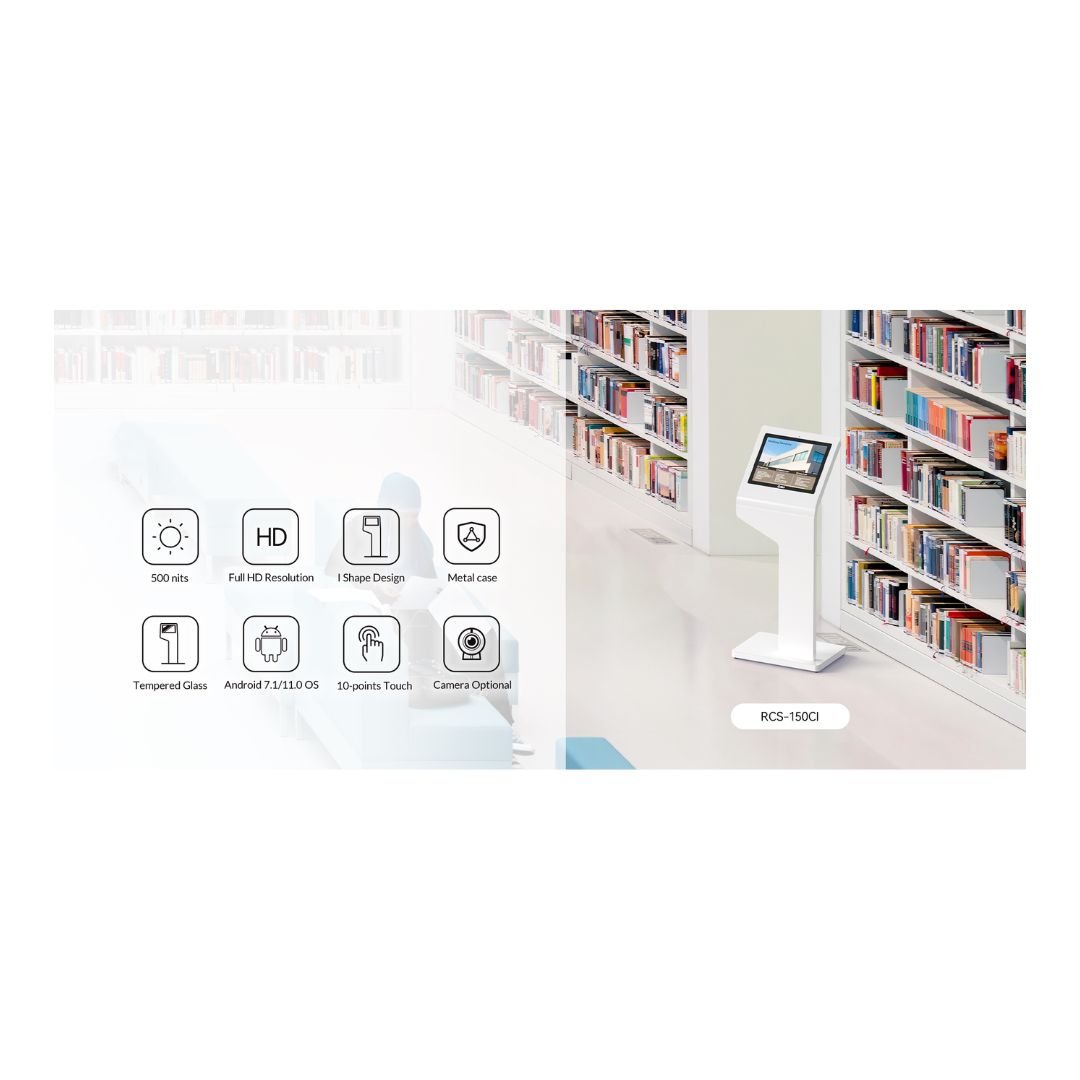 Digital Kiosk with Unique Stand 15 inch. The ARL-RCS-150CI 15-inch Digital Kiosk with Unique Stand is a compact yet powerful interactive solution designed for various indoor environments such as trade show booths, reception lobbies, and retail spaces. It features an elegant “I” shape one-piece stand with an integrated design that is both sturdy and space-efficient, requiring no installation. Equipped with a commercial-grade TFT-LCD panel, a responsive 10-point capacitive touch screen, and 500 nits brightness, it delivers clear, bright, and high-quality picture display. Its durable construction includes a reinforced metal body with RC-1162 white high-quality powder coating and a tempered glass protective screen, ensuring longevity and a sleek appearance. Running on Android OS with optional CMS, Wi-Fi, LAN, 3G/4G, and BT5.0, it supports auto-looping videos/images from USB/SD cards and offers an optional camera, making it a versatile and attractive add-on for any commercial setting.