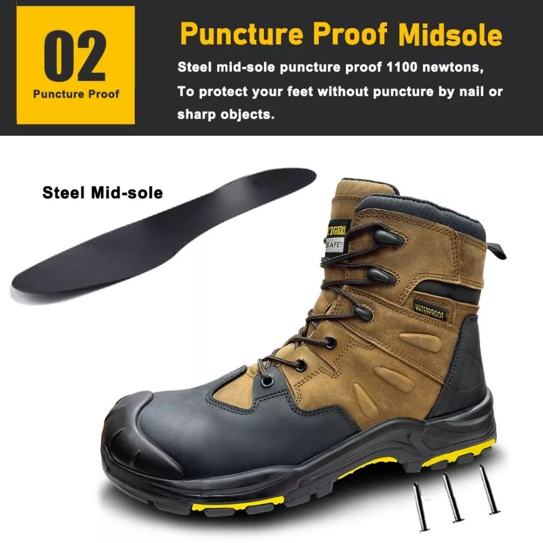 - Midsole: Steel midsole (1100 newtons puncture resistant), meeting CE standards.