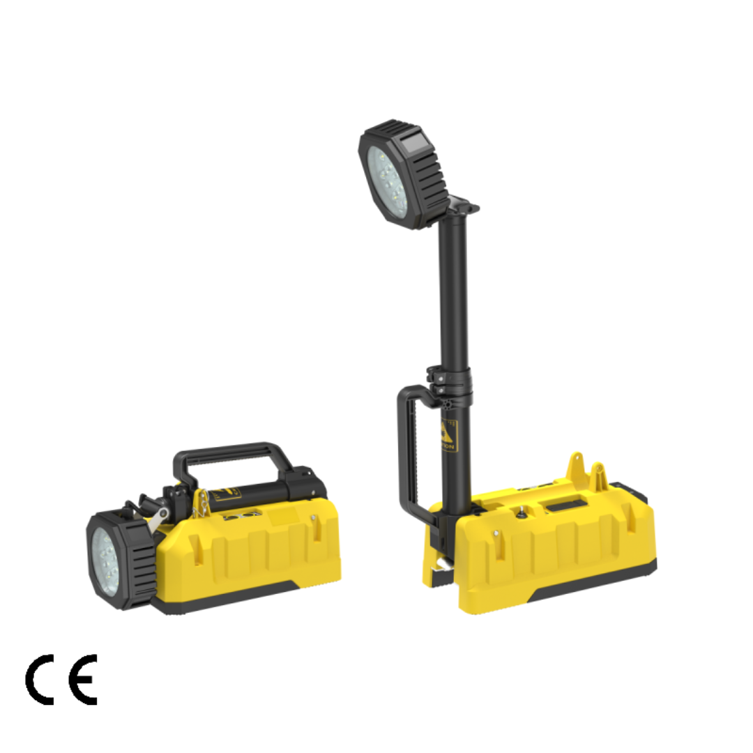 Industrial Mobile Light Tower ARL-INMP80R. The ARL-INMP80R is a rechargeable industrial mobile light tower designed for a wide range of professional applications, including construction, maintenance, and emergency response. It features a horizontally and vertically rotational lamp head to illuminate hard-to-reach areas and a pole that extends to a full height of 800mm. With a maximum output of 5,500 lumens and a coverage area of 50m², this light tower is built for quick deployment and reliable performance in non-explosive industrial environments.