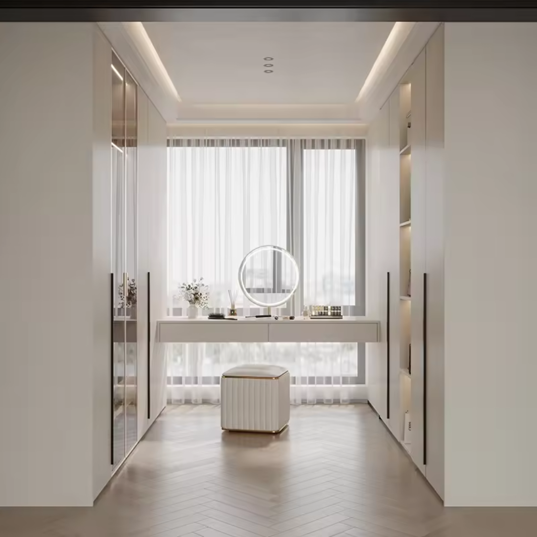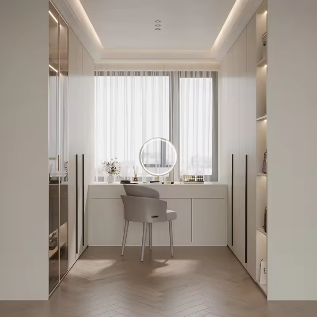 - Integrated Wardrobe & Dressing Area: Combines clothing storage with a dedicated space for grooming or dressing, maximizing utility.
