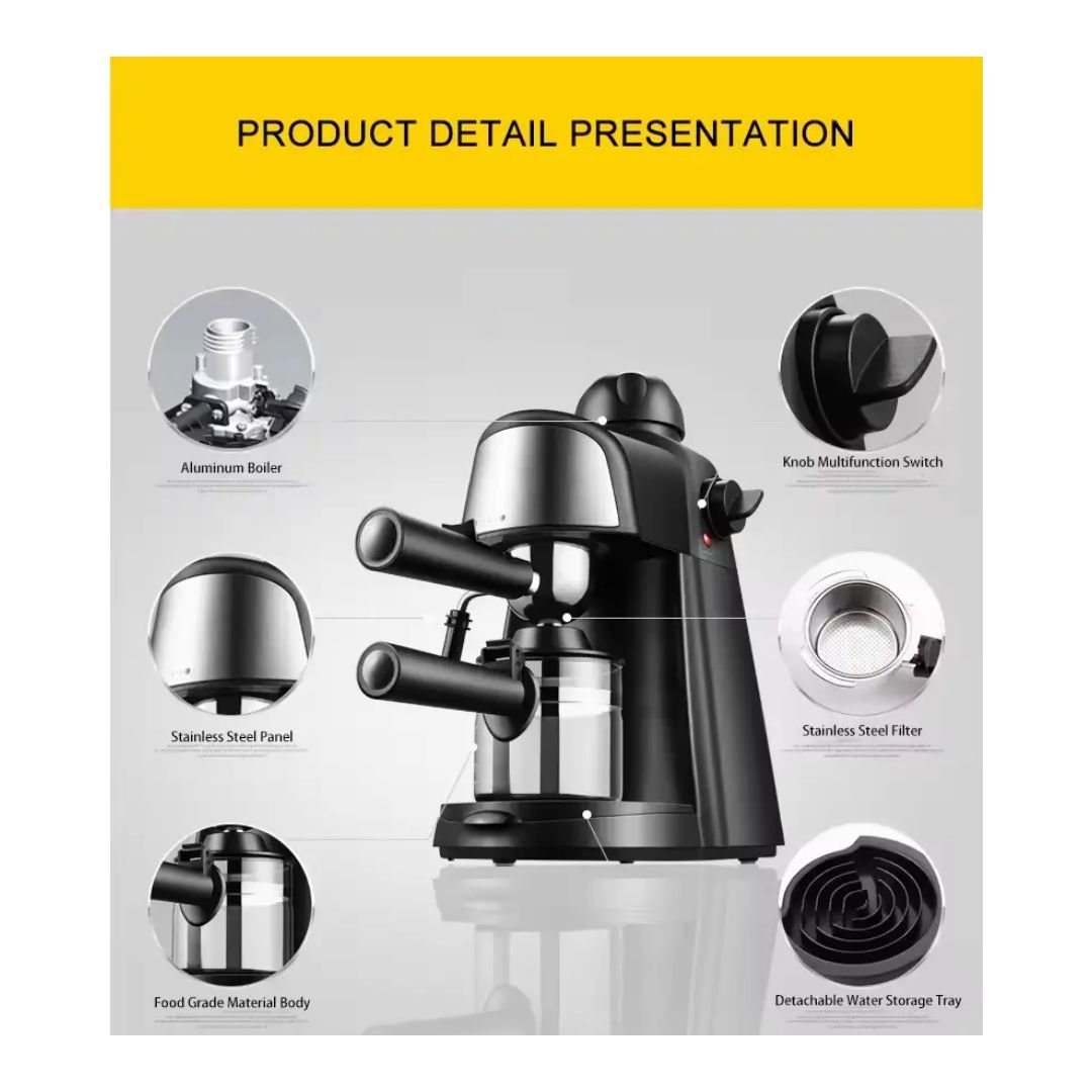 The Milk Frother Steam Type Italian Espresso Coffee Machine ARL-CM6810 is a compact and user-friendly appliance designed to bring authentic Italian espresso and milk-based beverages into your home. This semi-automatic machine operates on a steam-type principle, allowing for both coffee brewing and milk frothing. Its small footprint and lightweight design, coupled with food-grade PP material, make it a convenient and safe choice for daily use, delivering Italian-style coffee with ease.
