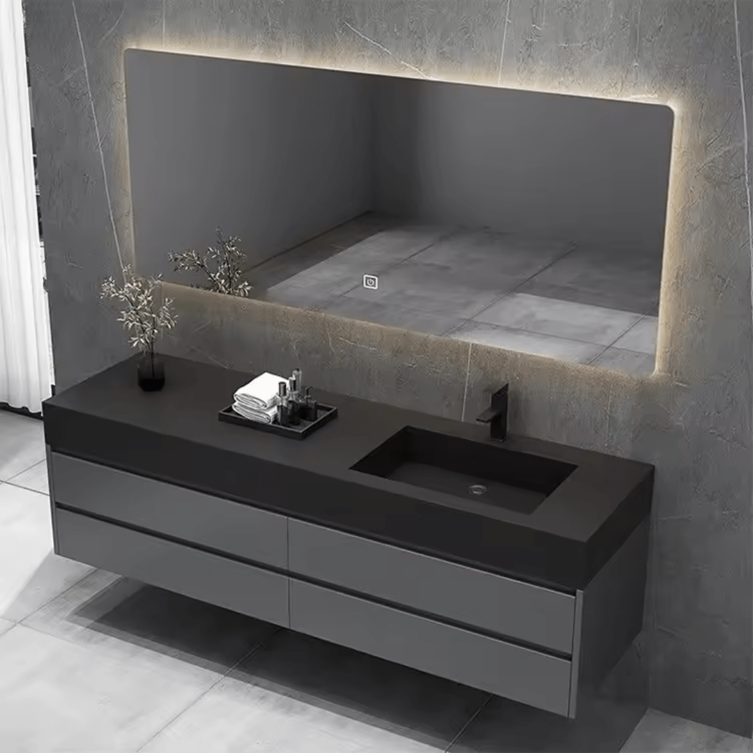 Modern Waterproof Single Black Wall Hung Bathroom Vanity