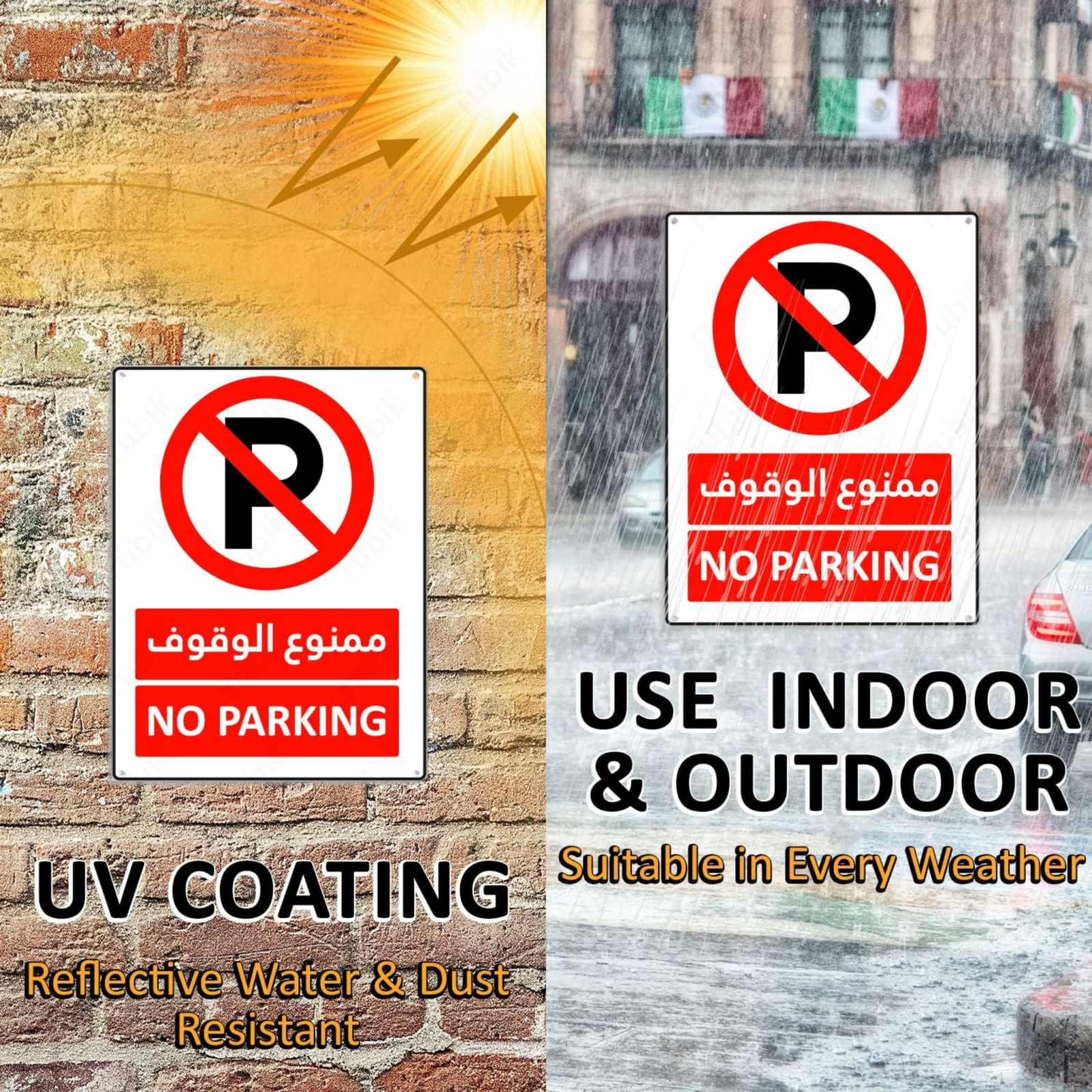 Keywords: No Parking Plastic Sign, 15×20 cm, Reflective, UV Protected, Weather Resistant, Arabic English, Bilingual Sign, Durable Plastic Sign, Outdoor Sign, Parking Lot Sign, Private Property, Driveway Sign, Unauthorized Parking Prevention