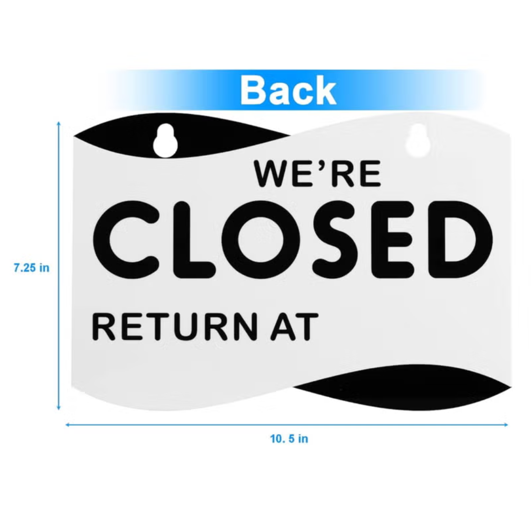 - Double-Sided Design: Features “Open” on one side and “Closed” on the other for versatile use.