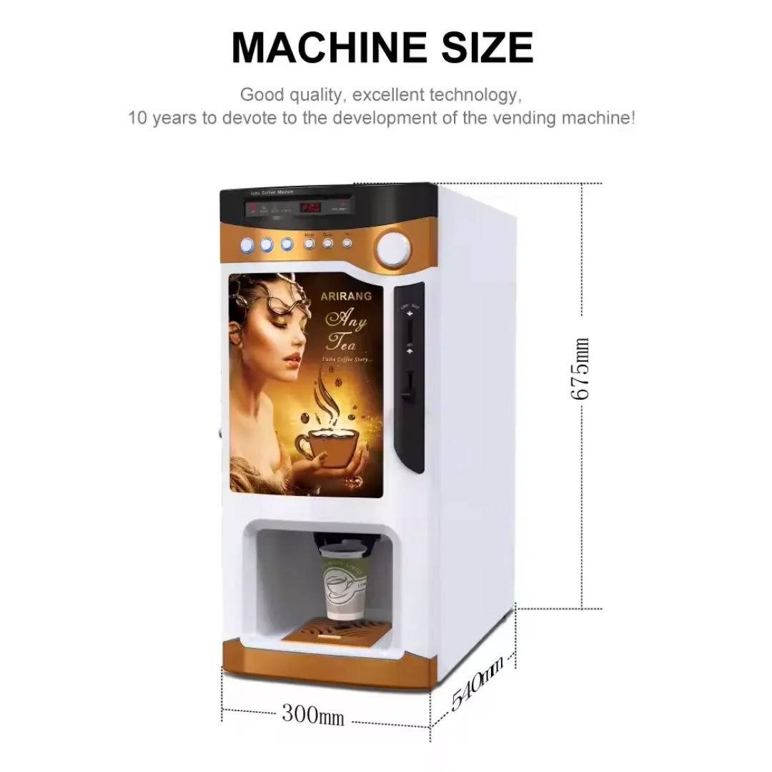The Outdoor Smart Commercial Coffee Vending Machine ARL-LE303V is a robust and intelligent solution designed for outdoor and commercial environments. This compact yet powerful machine offers a fully automatic, bean-to-cup experience for three hot premixed drinks, ensuring fresh and delicious beverages. With its durable aluminum housing and versatile voltage compatibility, the ARL-LE303V is built for reliable, high-quality service in various outdoor and commercial settings.