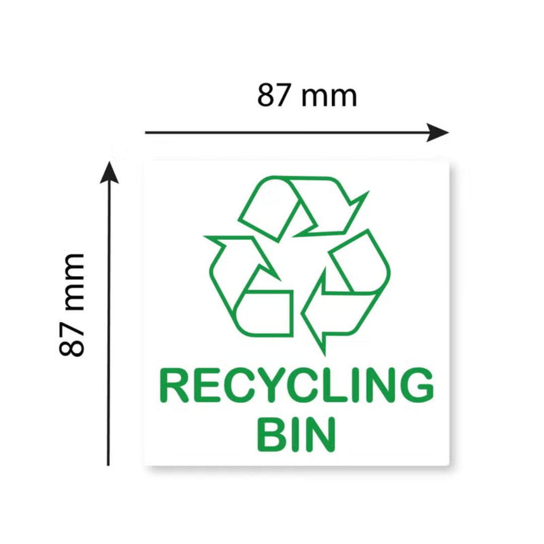 Recycling Bin Stickers 87x87mm Self-Adhesive Vinyl Labels with Recycle Symbol, UV Protected Set of 5