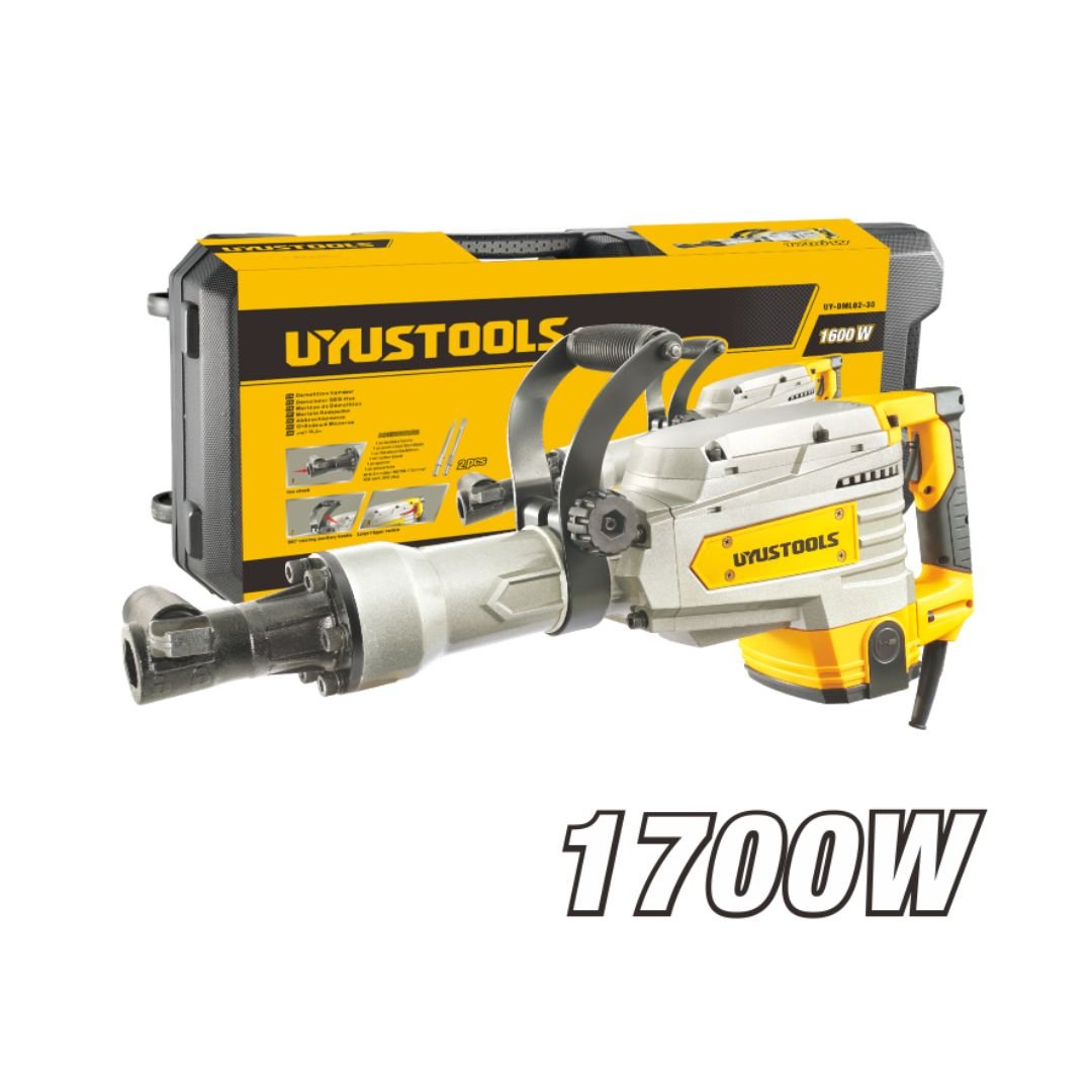 SDS-HEX Demolition Hammer Model ARL-UY-DML02-30. This demolition hammer features an SDS-HEX chuck for stronger applicability and a large, comfortable trigger switch for convenient operation. Its 1700W high-power motor delivers strong driving force. The 360° rotating auxiliary handle provides anti-slip and shock absorption for enhanced control and comfort.