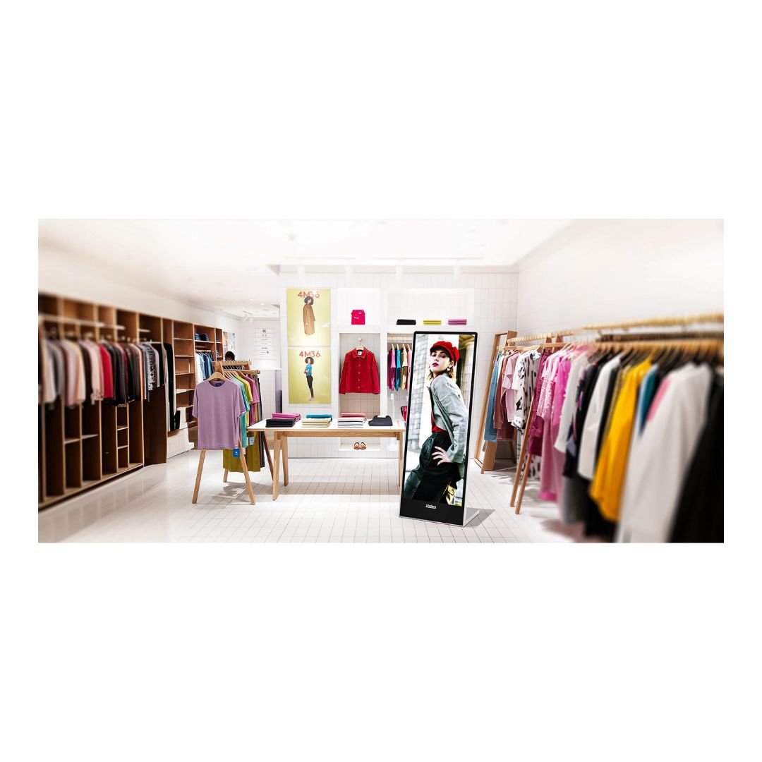Stretched Floor Standing Digital Display 69.3 inch. The ARL-RCS-693KLAZ is a 69.3-inch ultra-long stretched standing digital display, combining an elegant appearance with high visual enjoyment and complete convenience. Its ultra-thin, extra-long, and full-screen design makes it an ideal digital poster capable of capturing customer attention even from a distance. The display features a foldable stand and roller design, allowing for easy movement and placement. The front of the screen is covered with laminated tempered glass to effectively protect the screen and prevent glare. Equipped with an Android system and rich peripheral interfaces (TF/SIM, LAN, USB, Power), it provides a convenient way to update and manage digital signage content, with optional CMS and 4G connectivity. This display is suitable for a wide range of indoor applications, including retail stores, restaurants, and shopping malls.