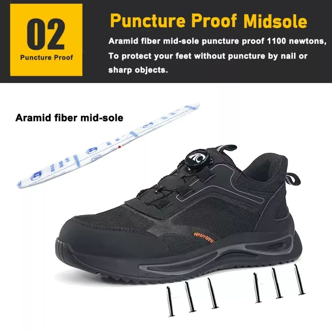 - Midsole: Aramid fiber midsole for puncture resistance, meeting CE standards.